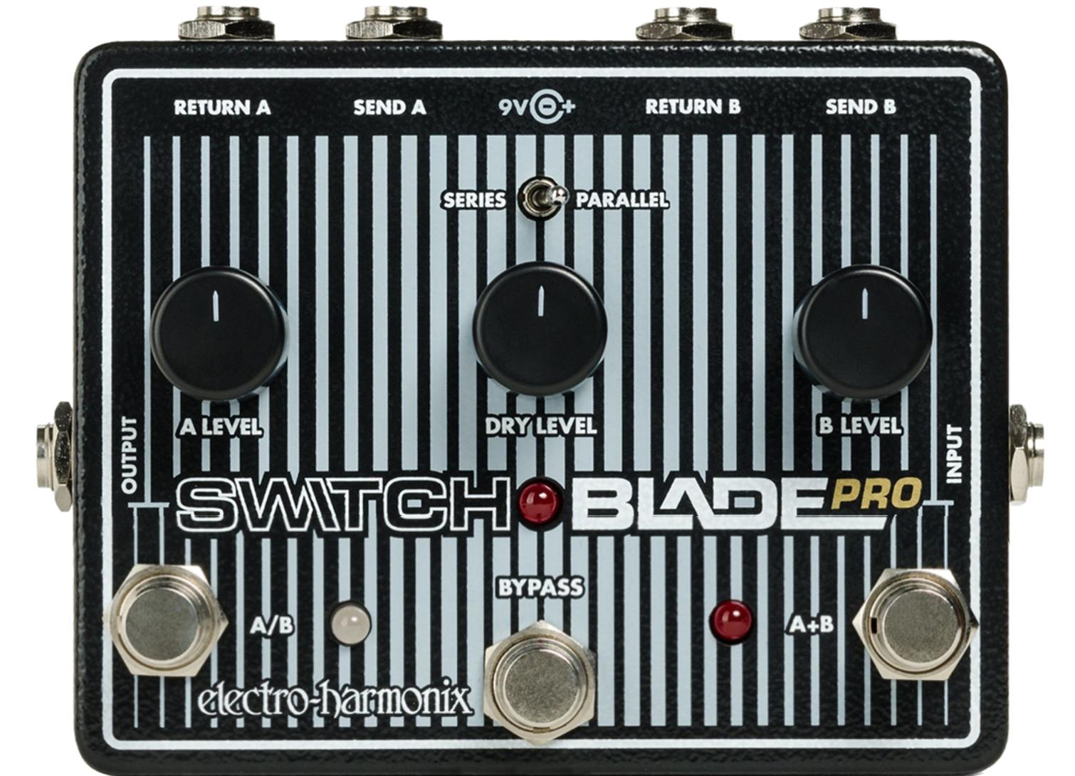 Das EHX Switchblade Pro ist eine Deluxe-Switching-Box mit echtem mechanischem Bypass, Soft-Switching, hochwertigen und rauscharmen Puffern, Lautstärkereglern für alle Eingangssignale, hohem Headroom und einer Vielzahl von möglichen Konfigurationen für all Ihre Signalrouting-Bedürfnisse. Dieses kompakte Pedal ist ein vielseitiges und unverzichtbares Werkzeug!